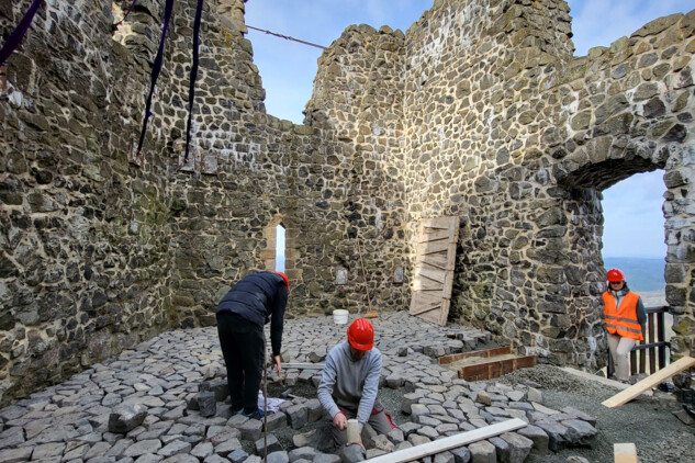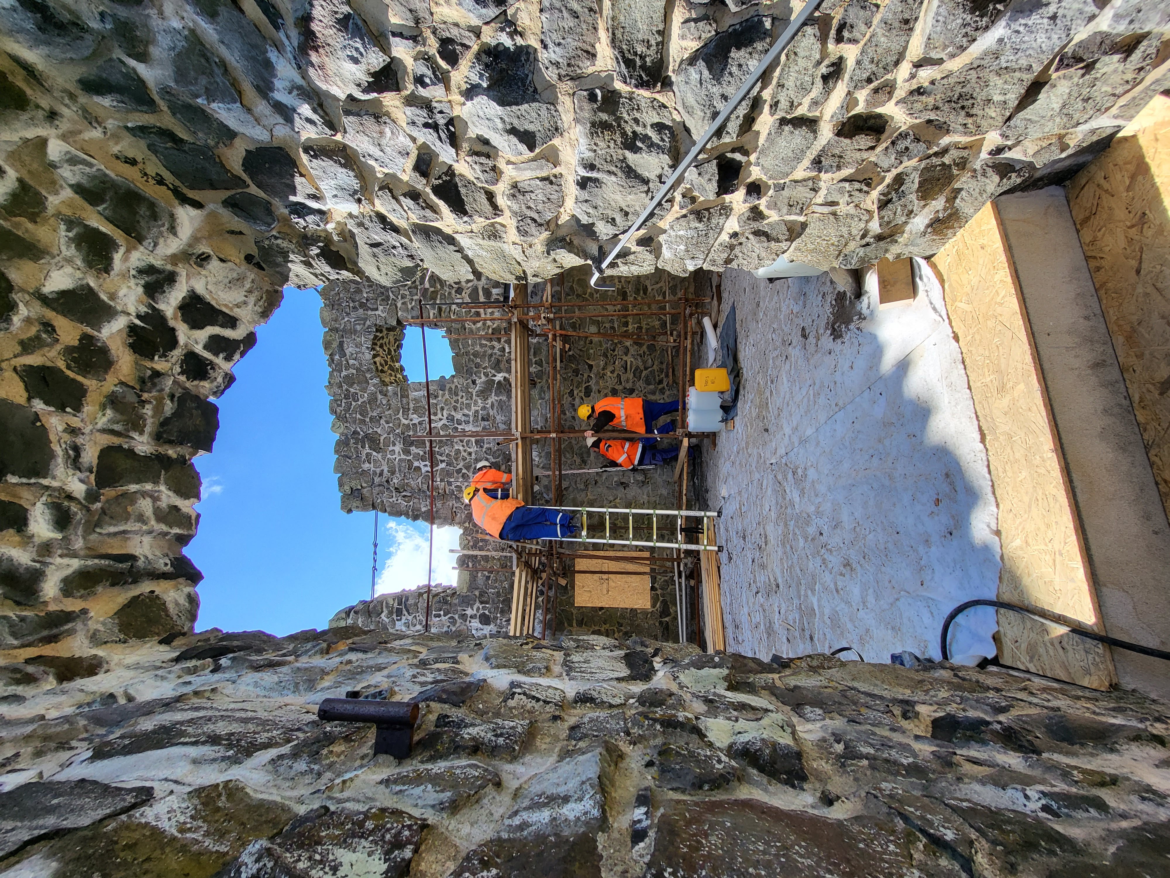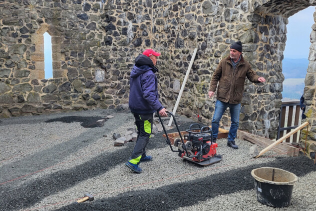 Z důvodu zasakování dešťové vody do podlahy věže a následného vzlínání obvodovým zdivem a rozrušování skály pod věží při promrzání, bylo na jaře 2024 provedeno odvodnění věže a s tím související zadláždění podlahy čedičovým štětem.