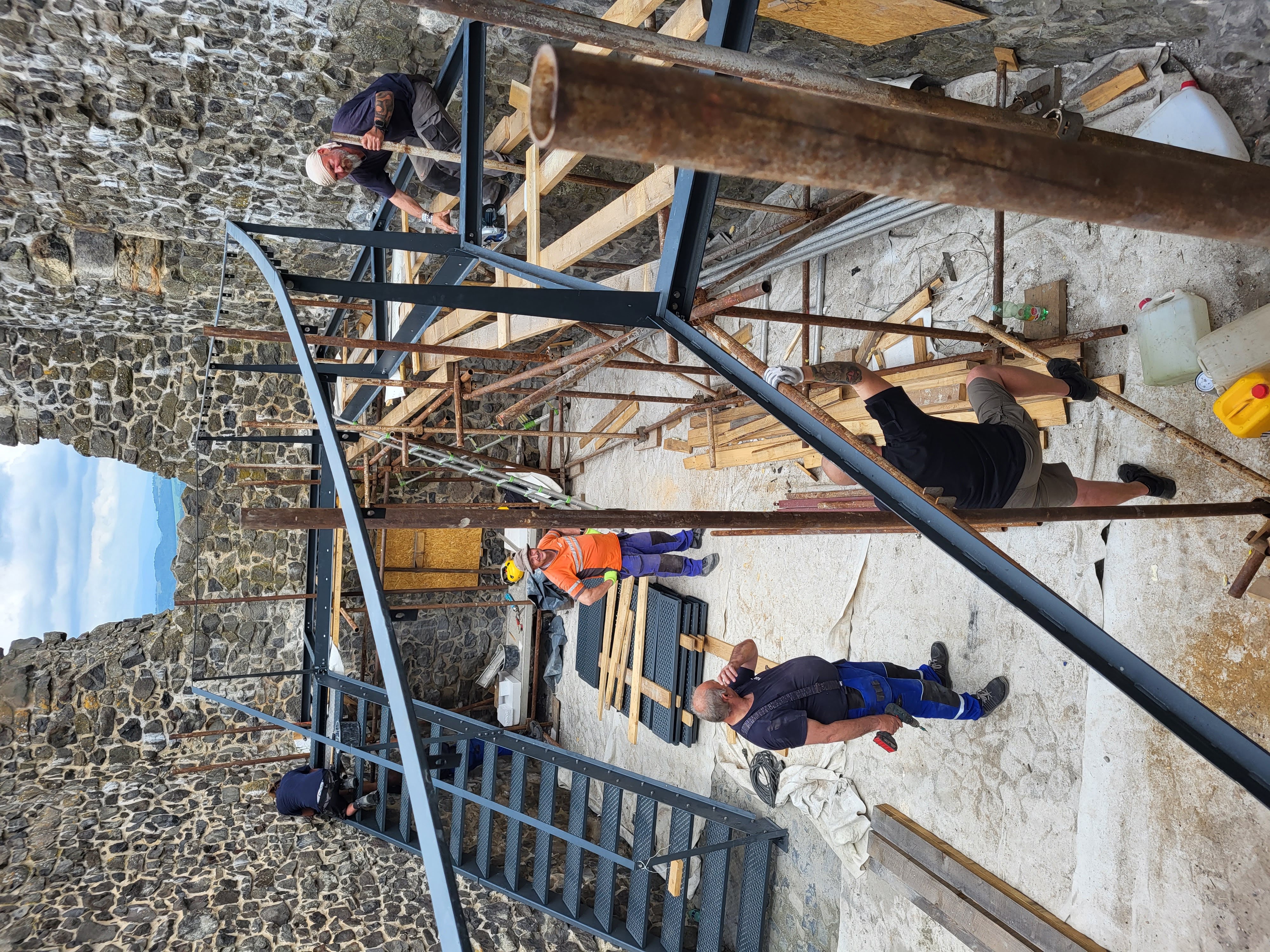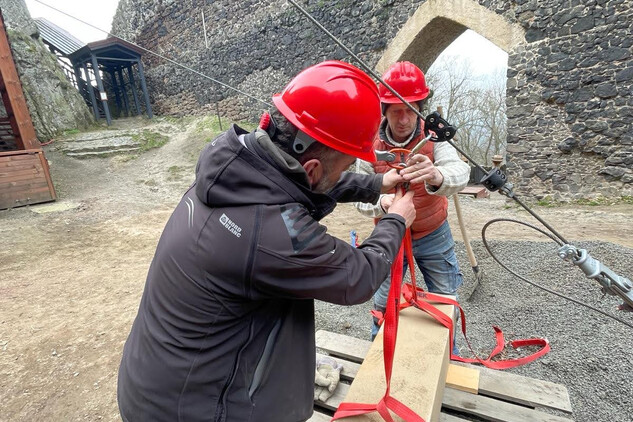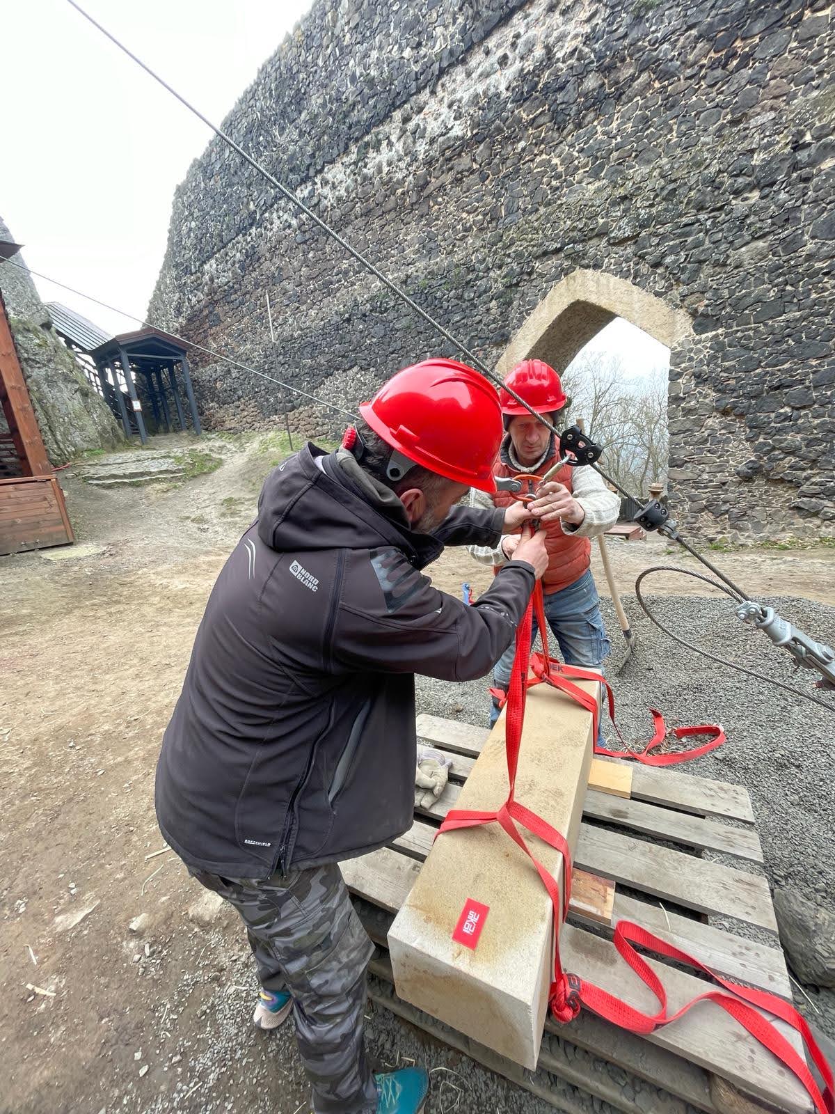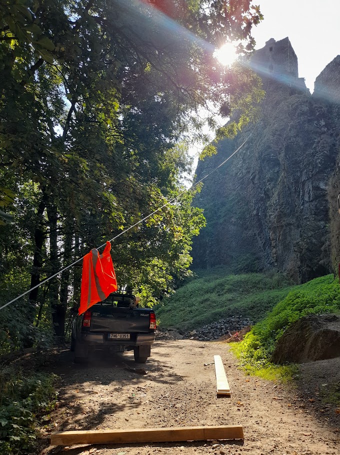 - Veškerý materiál na stavbu ochozu včetně pomocných konstrukcí (lešení), vynosili borci z realizační firmy ručně po schodech.