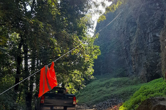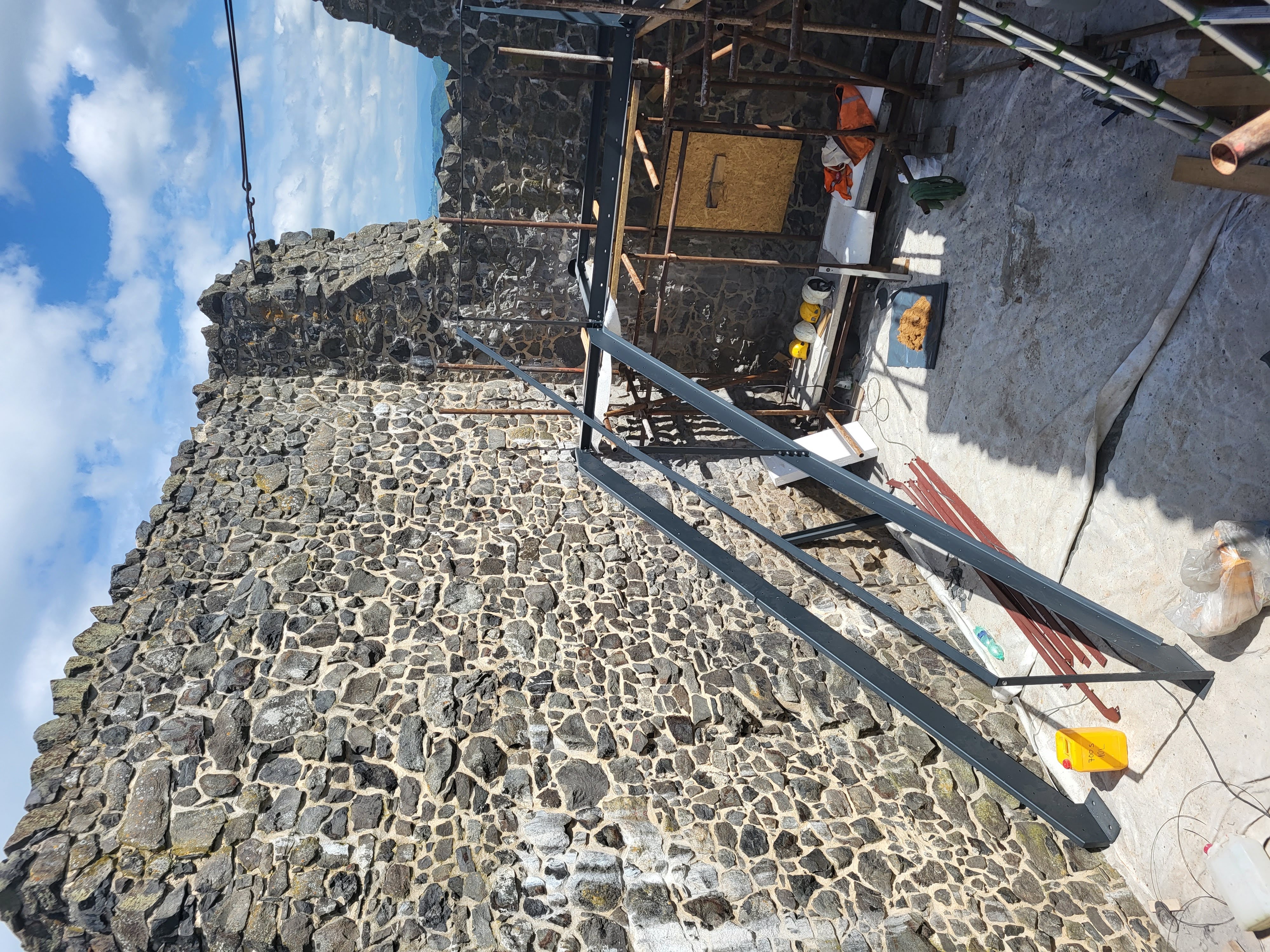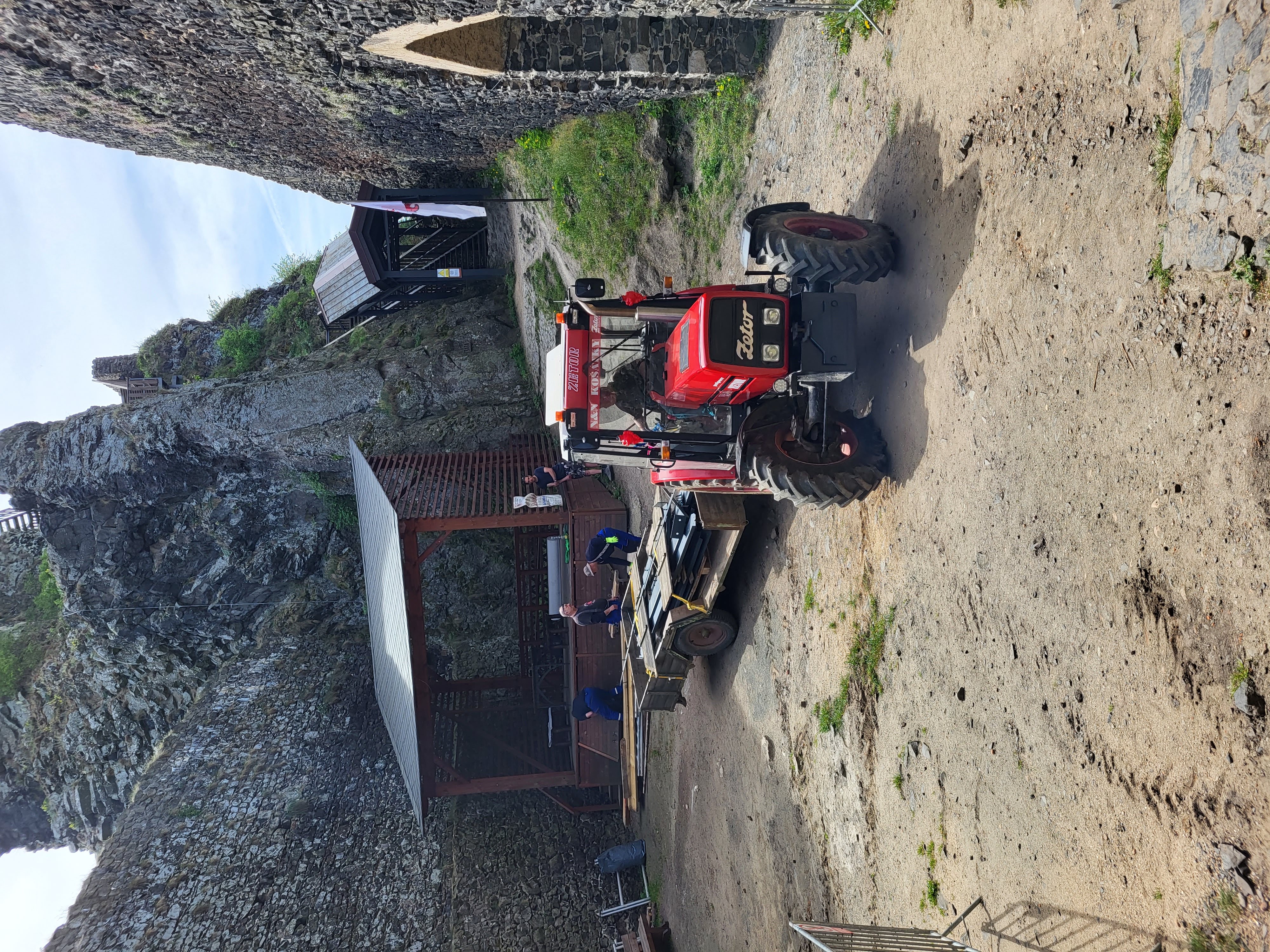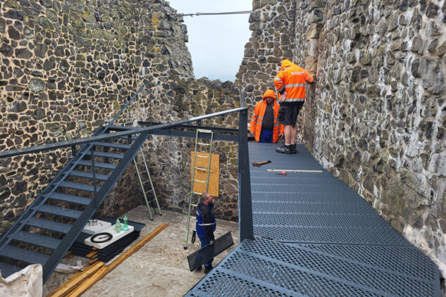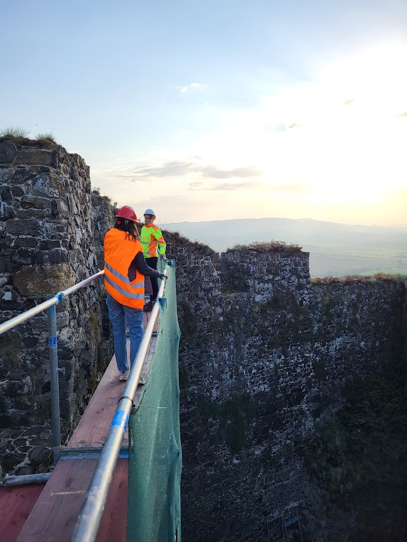- Veškerý materiál na stavbu ochozu včetně pomocných konstrukcí (lešení), vynosili borci z realizační firmy ručně po schodech.