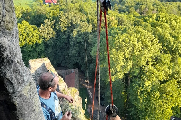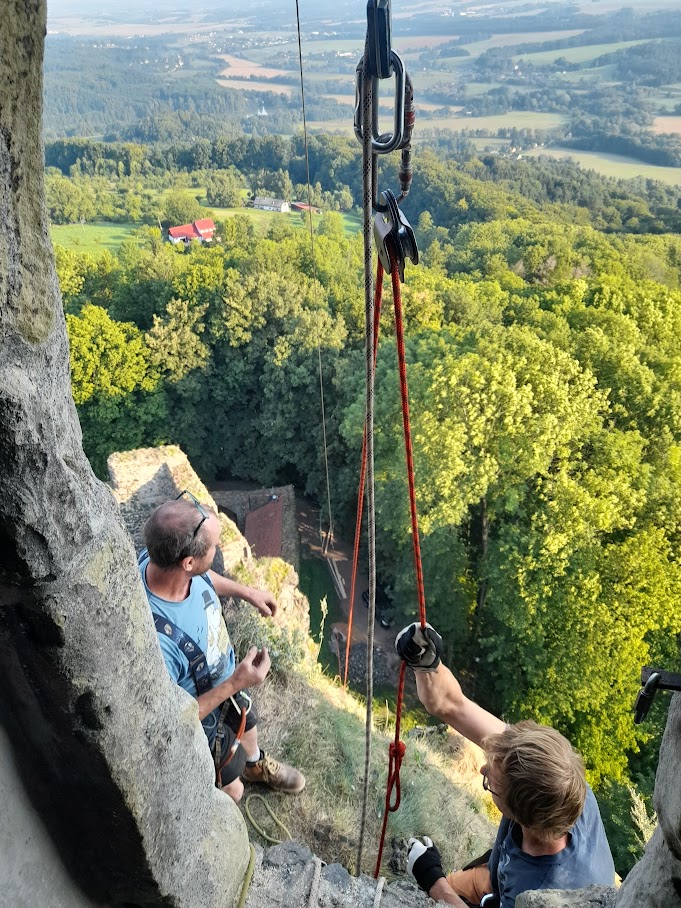 - Většina "zahradnických" a arboristických zásahů na Troskách probíhá na laně.