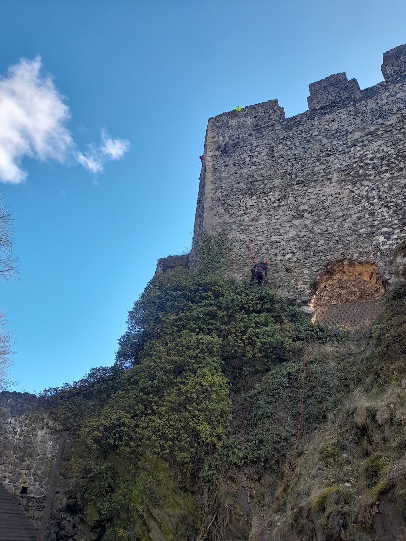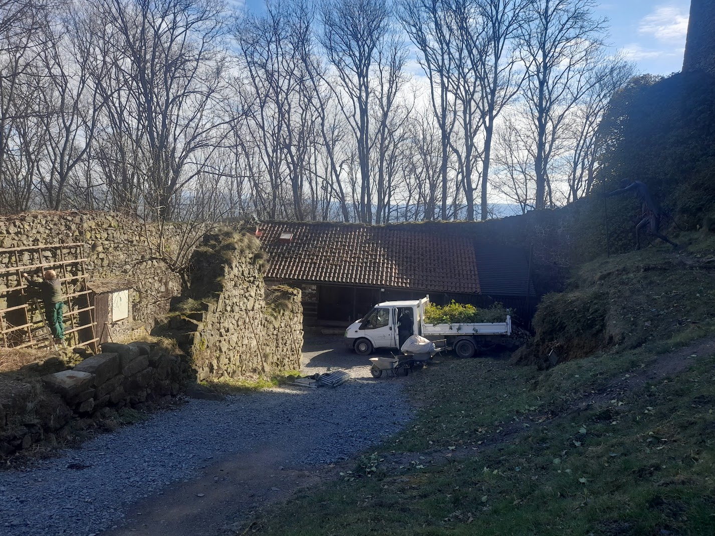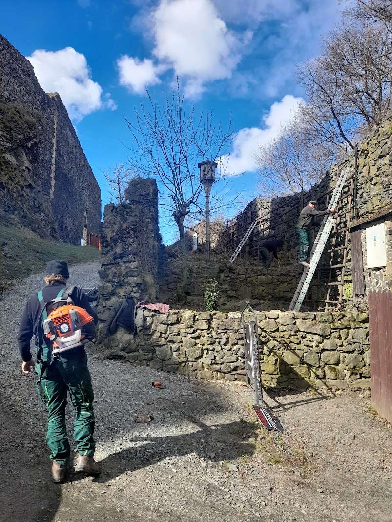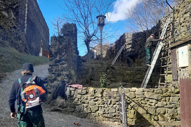 Slovy klasika - péče o zříceninu je věčný boj se zelení. Zatímco velkou část hradního kopce spásají kozy, krocení zeleně na hradě je na lidském faktoru. Kromě toho, že pečujeme o stromy v areálu i v bezprostředním okolí hradu, musíme likvidovat náletové stromky a keře jak z hradebního zdiva, tak ze skal - obojí je jejich kořeny rozrušováno. Redukujeme také břečťan pnoucí se po hradbách - na pohled je sice krásný, ovšem pro hradební zdivo působí jako nežádoucí zátěž.